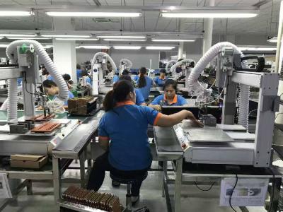 焊錫機、導軌、自動點膠機等自動化機器,原先一條生產線后面焊錫工位需要5個人才能讓流水線正常運轉而不會堆積產品,很大程度上節約了一半以上的操作人員。